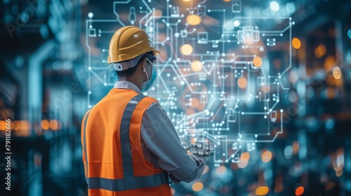 Engineer Using Digital Interface in Factory