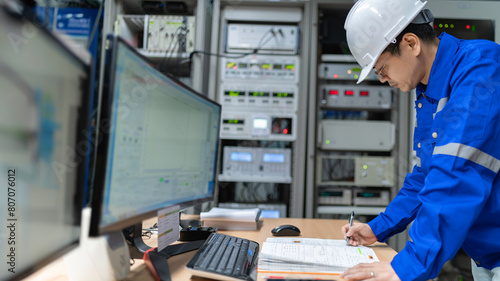 Engineer working at control room,Manager control system,Technician man monitoring program from a lot of monitor