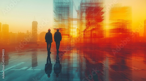 Engineering Digital Design: Building Construction with Double Exposure and Graphic Elements for High-Tech Imagery, Generative AI