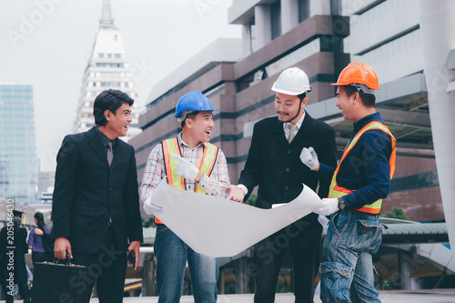 Engineering grop working together at outdoor,happy Teamwork concept.