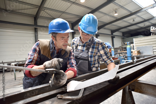 Engineers working on project in metallurgy manufacture