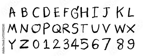 English alphabet A to Z, 0 to 9 11 cute on a white background, vector illustration.