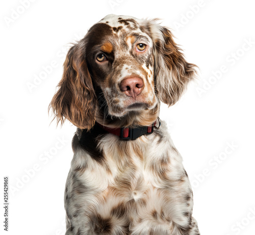 English Setter, 6 months old, in front of white background