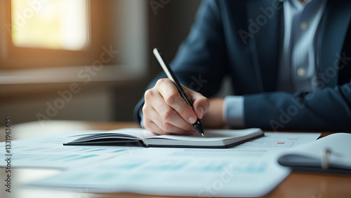 Enhance Productivity: Man Writing Notes in Modern Workspace