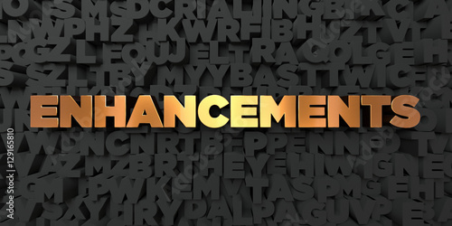 Enhancements - Gold text on black background - 3D rendered royalty free stock picture. This image can be used for an online website banner ad or a print postcard.