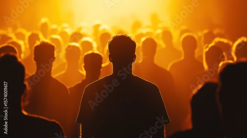 Enigmatic Crowd Silhouettes Bathed in Golden Light, Reflecting Shared Humanity