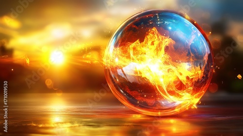 Enigmatic Fiery Orb at Sunset, Radiant Energy Sphere