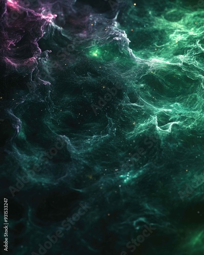 Enigmatic Flowing Molten Texture Background in Deep Greens and Purples with Glowing Embers
