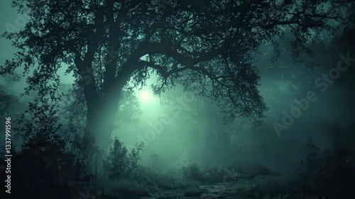 Enigmatic Fog-Shrouded Forest Path at Dusk
