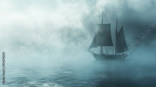 Enigmatic Ghost Ship Sailing Through the Mists of the Open Sea - Nautical Mystery and Adventure