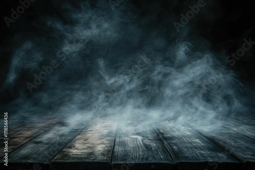 Enigmatic Shadows Mysterious Fog and Smoke on Wooden Surface