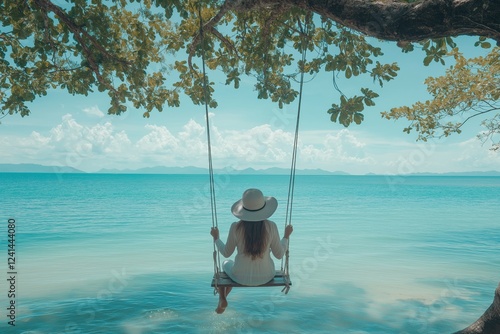 Enjoy a serene summer getaway on a cozy swing with breathtaking ocean views. This tranquil spot lets you relax amid refreshing breezes and beautiful scenery, perfect for unwinding in comfort