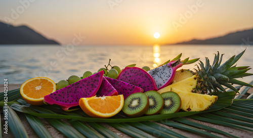 Enjoy fresh vibrant tropical fruit at sunset for healthy living lifestyle and exotic vacation vibes