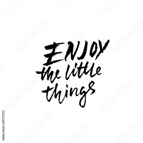 Enjoy the little things. Hand drawn dry brush lettering. Vector typography design. Handwritten inscription.