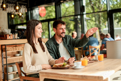Enjoying a delightful brunch together at a cozy cafe on a sunny afternoon in the heart of the city