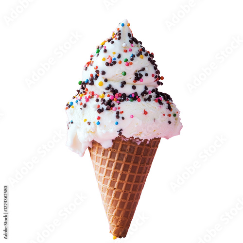 Enjoying a delightful ice cream cone with colorful sprinkles on a pink background, Ice Cream in the Cone