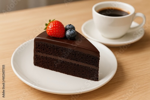 Enjoying a slice of dark chocolate dessert alongside a cup of coffee during leisure time