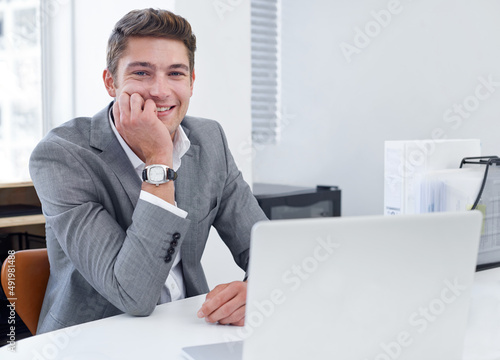 Enjoying his job to the fullest. A satisfied young businessman sitting at his desk.