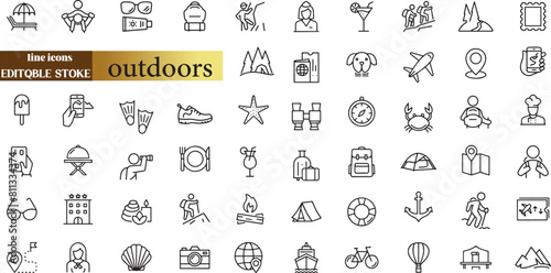 Ensemble simple d'icônes Vectorielles Liées aux Voyages Extérieurs