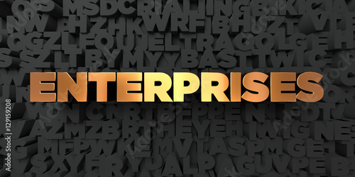 Enterprises - Gold text on black background - 3D rendered royalty free stock picture. This image can be used for an online website banner ad or a print postcard.