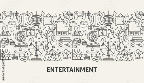 Entertainment Banner Concept. Vector Illustration of Outline Design.