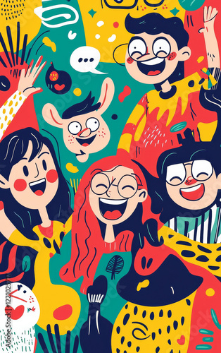 Enthusiastic illustration: A joyful gathering of diverse individuals is depicted, capturing the essence of connection and camaraderie.