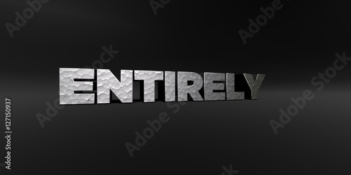 ENTIRELY - hammered metal finish text on black studio - 3D rendered royalty free stock photo. This image can be used for an online website banner ad or a print postcard.