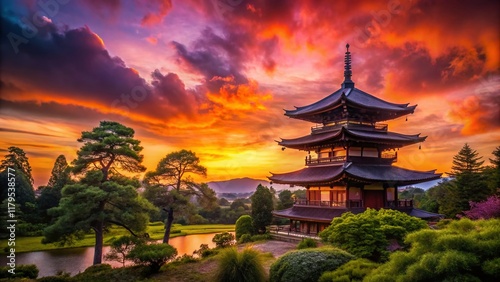 Entoku-in Temple Silhouette at Sunset - Japanese Zen Garden Backlit