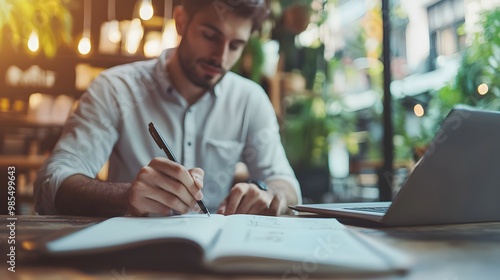 Entrepreneur Sketching Business Ideas in Modern Cafe During Creative Planning Session