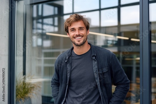 Entrepreneur standing in front of a newly opened store.