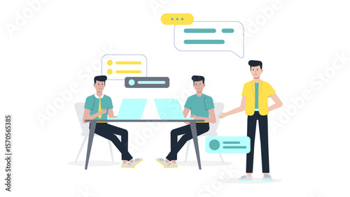 Entrepreneurs Working Together in Co-Working Space, flat vector illustration