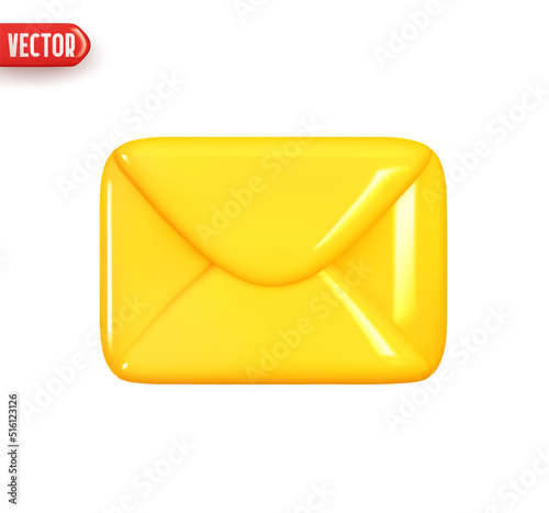 Envelope email. Postal letters Realistic 3d design In plastic cartoon style. Sending messages symbol. Icon isolated on white background. Yellow colors. Vector illustration