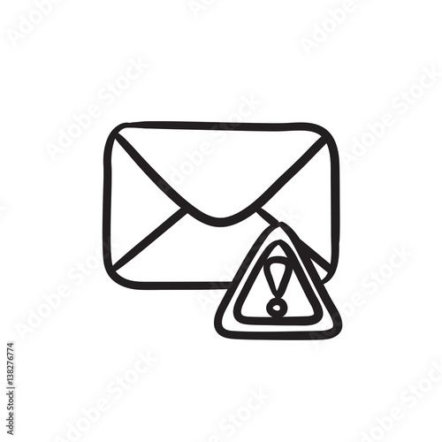 Envelope mail with warning signal sketch icon.