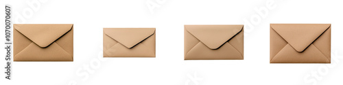 Envelope with flap open made from brown Kraft paper, with an eco-friendly design. Isolated on transparent background.