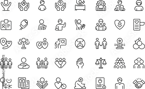 Environment and sustainability icon set with eco, recycling, climate, and green energy in line style vector illustration.