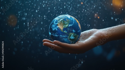 Environment Earth Day In the hands holding earth with Heavy rain and storm,Saving environment,Global Warming,environmentally sustainable,Save Earth,Disaster,Concept the Environment World Earth Day.