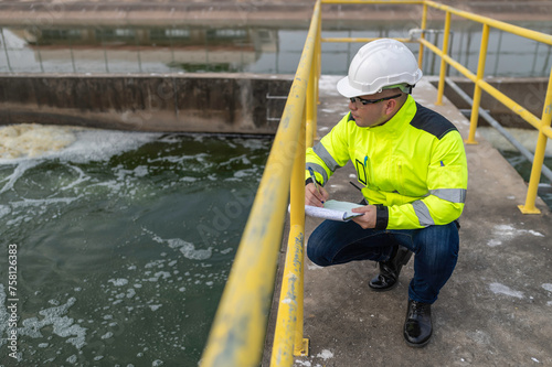 Environmental engineers work at wastewater treatment plants,Water supply engineering working at Water recycling plant for reuse