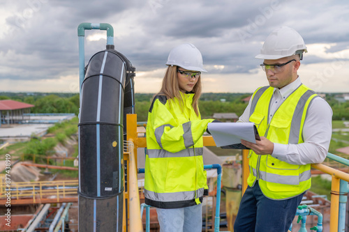Environmental engineers work at wastewater treatment plants,Water supply engineering working at Water recycling plant for reuse