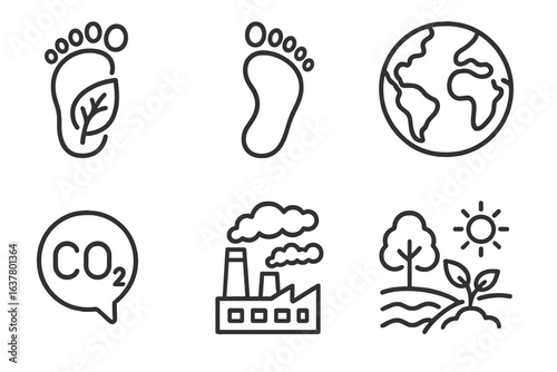 Environmental icons: carbon footprint, earth, co2 emissions, and sustainability symbols