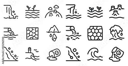 Environmental outline icons set – conservation, nature, sustainability symbols