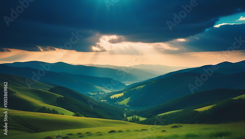 epic fantasy landscape vibrant sky valleys hills mythical skies
