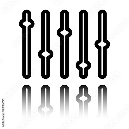Equalizer, slider simple icon. Flat design. Black icon with mirror reflection. White background