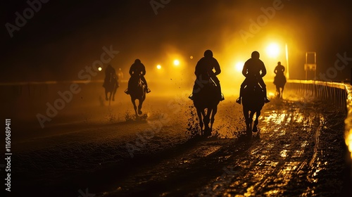 Equestrian Race at Night with Silhouettes and Dramatic Lighting