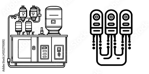 Equipment for water purification located in a industrial facility displaying various filtration systems and control units