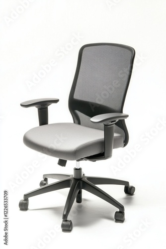 Ergonomic office chair with mesh back and adjustable armrests on wheels