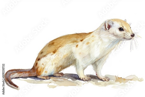 Ermine, Pastel-colored, in hand-drawn style, watercolor, isolated on white background