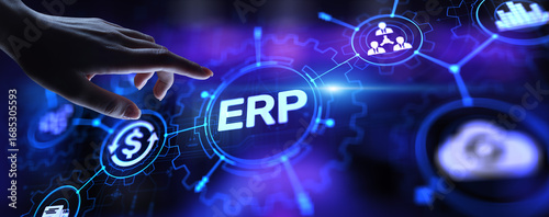 ERP - Enterprise resource planning business and modern technology concept on virtual screen.
