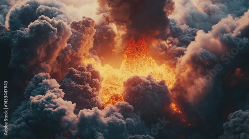 Erupting Volcano with Molten Lava and Smoke