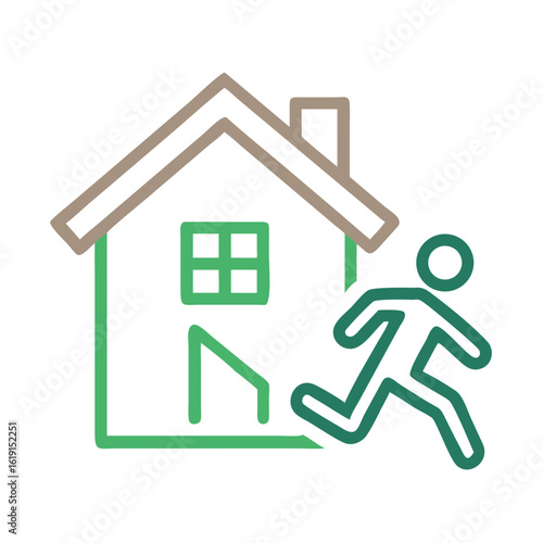 Escape from Home: Line art illustration of a person running away from a house