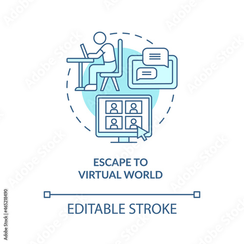 Escape to virtual world blue concept icon. Virtual reality abstract idea thin line illustration. Gadget addiction. Happiness mindset obstacle. Vector isolated outline color drawing. Editable stroke
